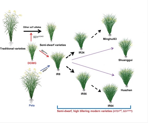 图:SD1和HTD1有利等位基因在现代育种中应用的模式图