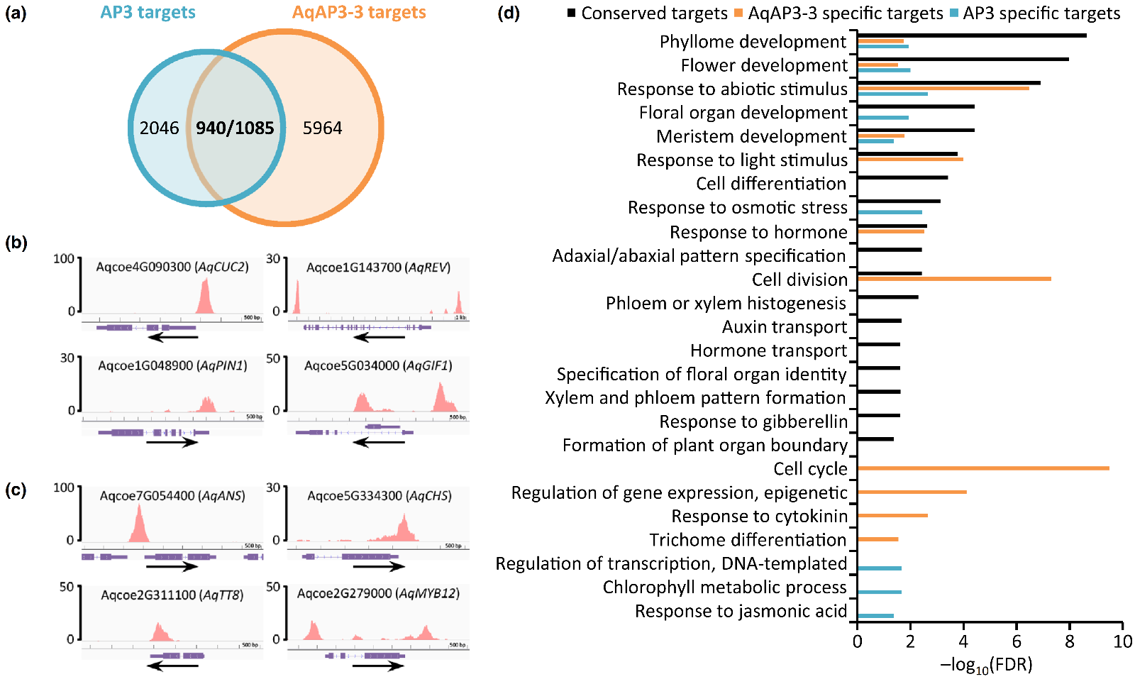 AqAP3-3和AP3靶基因的比较