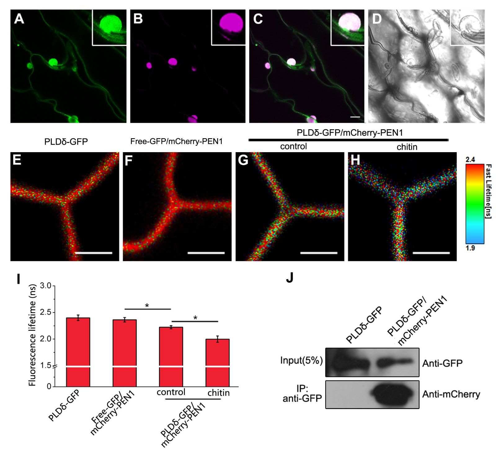 图为病原菌刺激后,PLDδ和PEN1的相互作用