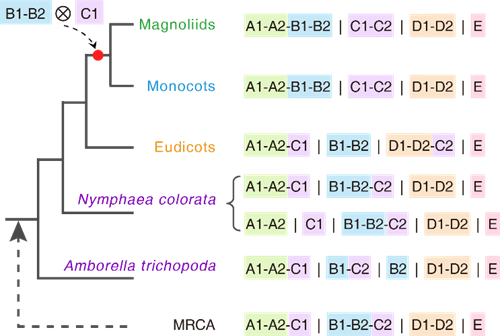 前期大量基于序列的研究,一直都难以获得高可信度的系统发育关系。该研究通过对被子植物主要类群的代表物种进行基因组结构比较,发现木兰类植物和单子叶植物共享了一次染色体易位事件,而真双子叶植物则缺失了这一演化的特征,研究结果支持了木兰类植物和单子叶植物可能互为姐妹群,而双子叶植物在二者分化之前已经形成的观点。
