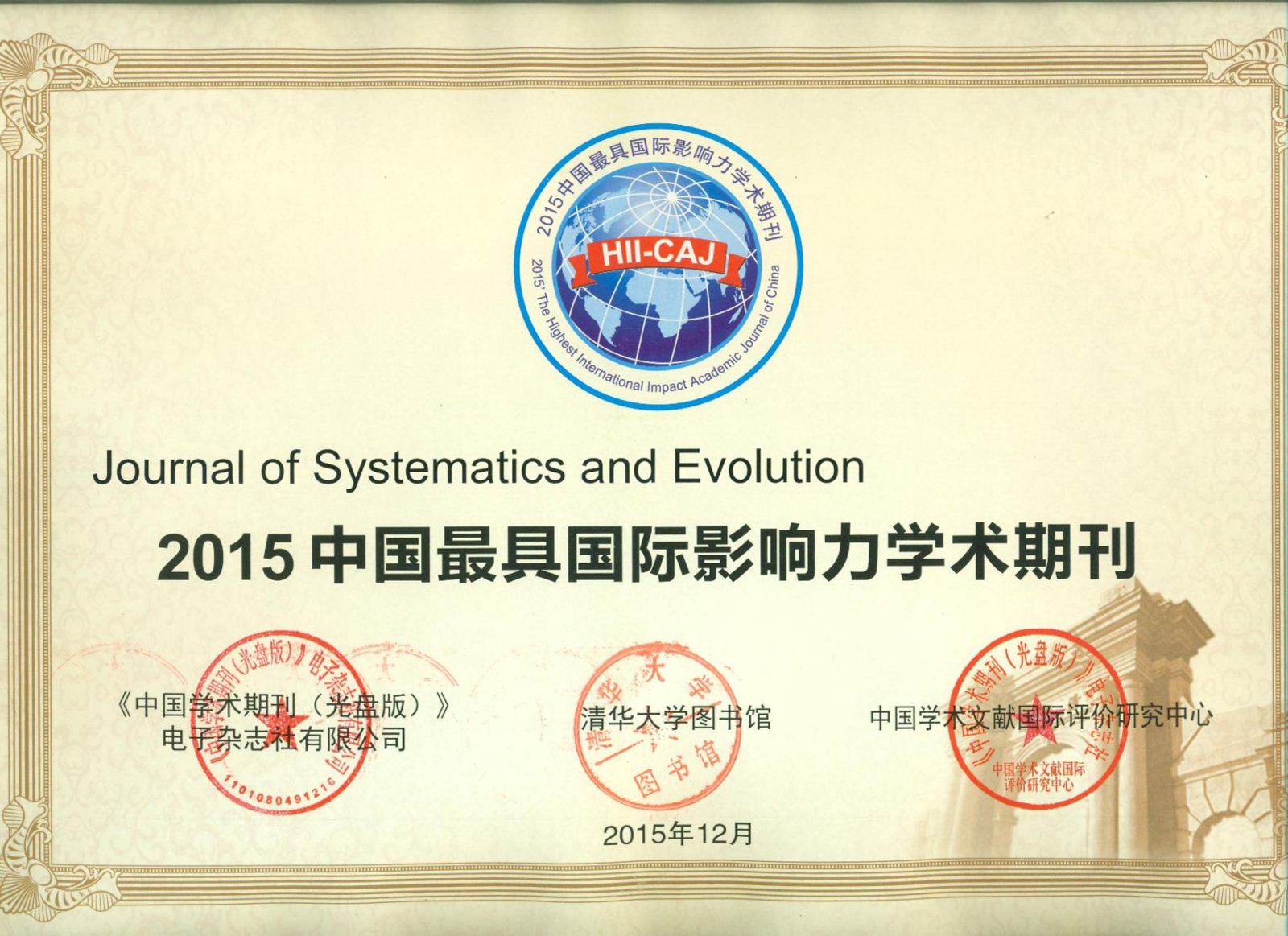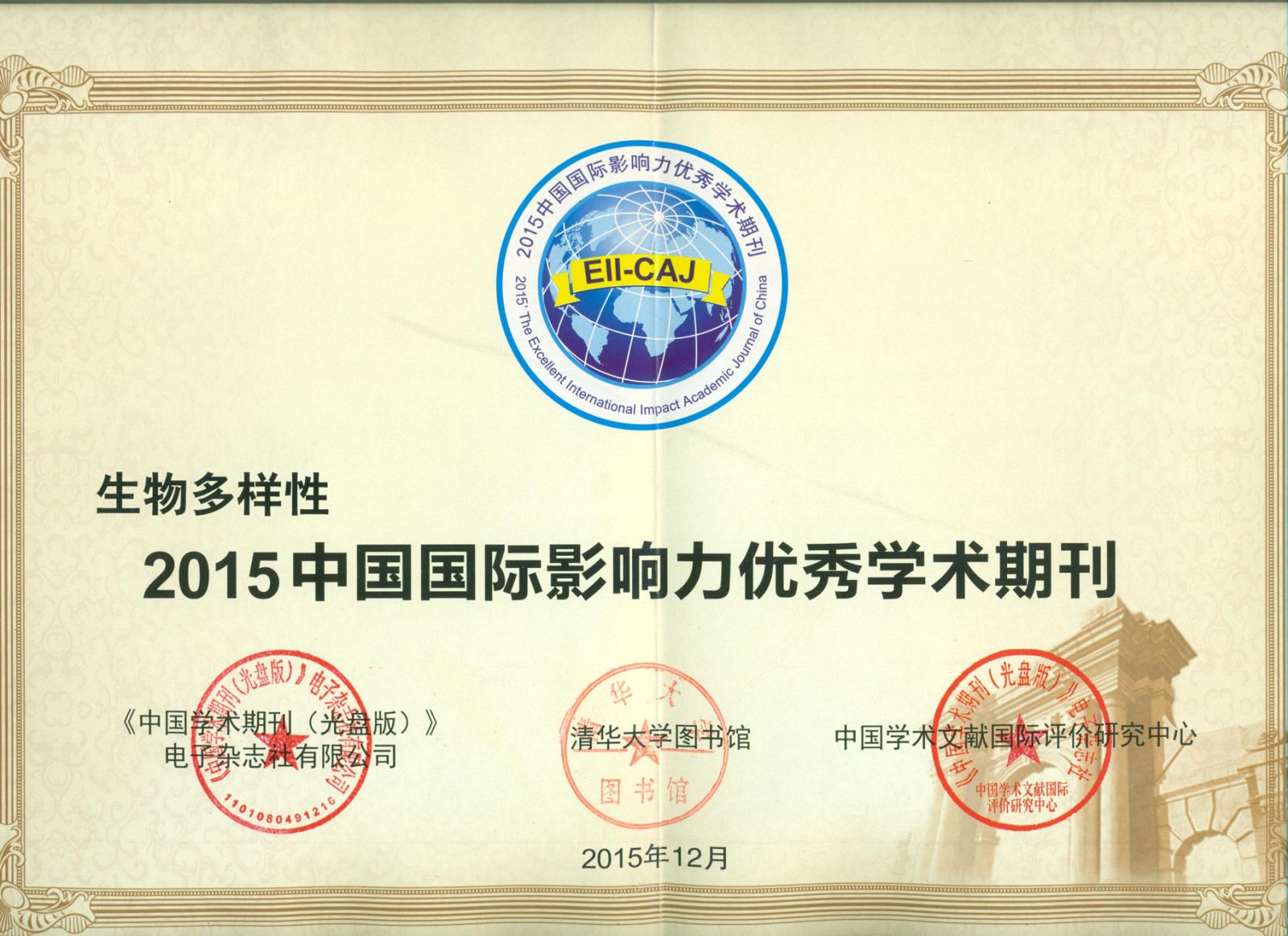 《生物多样性》入选“2015中国国际影响力优秀学术期刊”