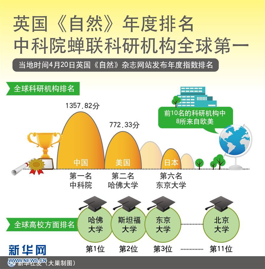 4月20日,2016自然指数排行榜(Nature Index 2016 Tables)正式发布,中国科学院位列全球首位。根据同时发布的2012-2015年自然指数数据,中科院已连续四年位列该排行榜全球第一。
