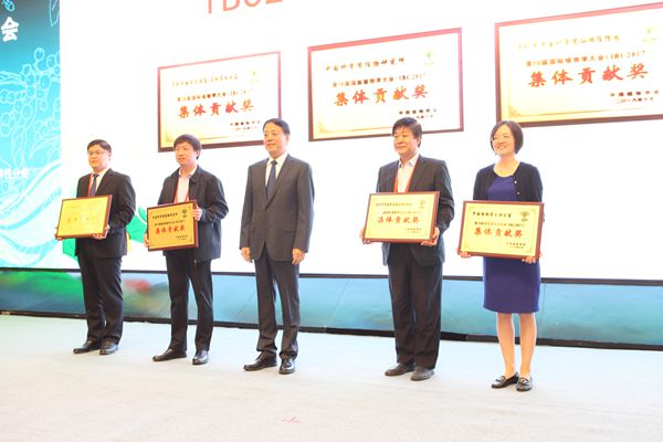 匡廷云和许智宏院士为葛颂等6人颁发“IBC2017 杰出贡献奖”