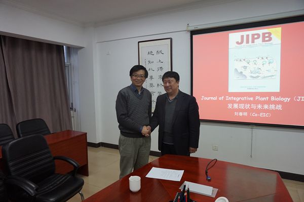 种康理事长充分肯定了刘春明主编十年来带领JIPB团队取得的重要成就,并对其为JIPB跨越式发展做出的贡献表示衷心的感谢。汪小全所长对刘春明主编为中国植物学界打造出这样优秀的学术期刊表示感谢。他宣布JIPB新任主编由种康院士和巩志忠教授共同担任,并表示植物所将给予期刊更大的支持。