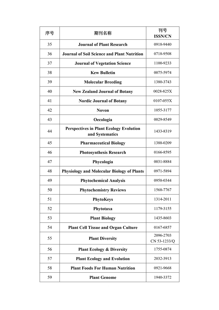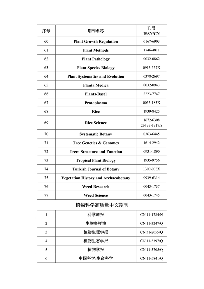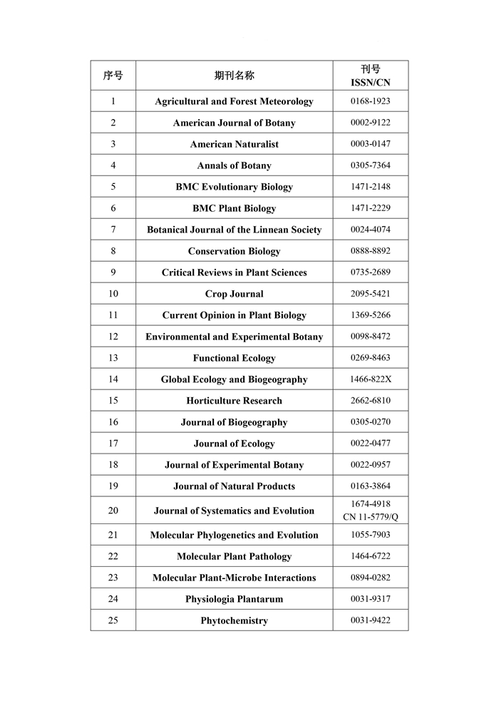 附:《植物科学领域高质量期刊分级目录》发布公告