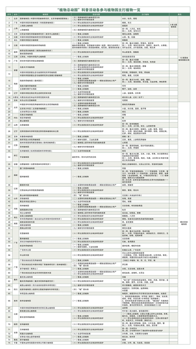 衷心感谢各植物园的大力支持!