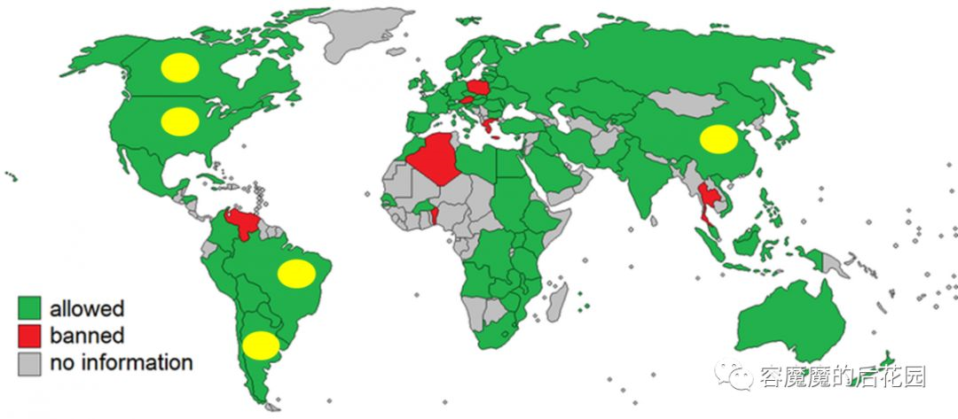 事实上,转基因食品已经是所有人难以回避的问题。下面这张图是全世界各个国家对于转基因食品的态度,其中绿色是允许转基因食品或研究,红色是禁止。可以看到,红色的国家很少,而且也不属于很重要的国家,稍微大一点的国家,也就只有波兰。