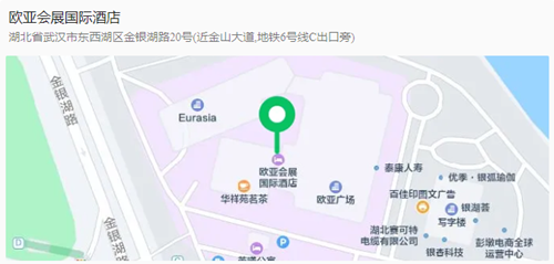 洒店地址:欧亚会展国际酒店 湖北省武汉市东西湖区金银湖路20号(近金山大道,地铁6号线C出口旁)