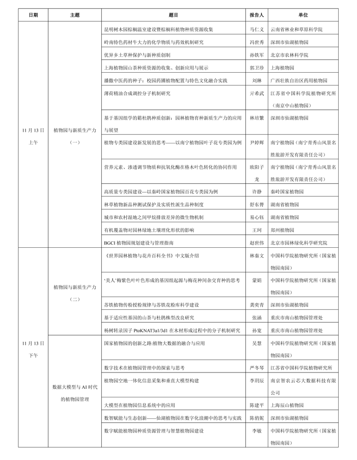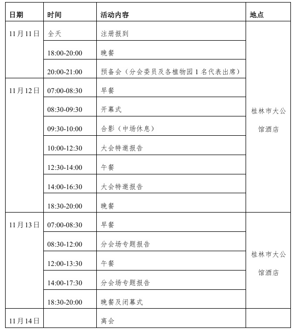 为全面推进美丽中国建设,构建人与自然和谐共生的现代化,建立国家植物园体系,筑牢生物多样性保护网络,进一步推动新时代中国植物园高质量发展,2025年植物园学术年会定于2025年11月11-14日在广西壮族自治区桂林市举办,诚邀植物园及相关单位工作者前来交流。