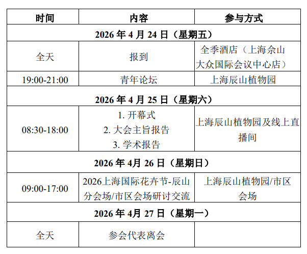 为推动兰科植物保育及科学研究,大力发展兰花产业,促进兰科植物保育与利用,兹定于2026年4月24日-27日(周五至周一)在上海召开第六届兰科植物保育与利用国际研讨会、第七届上海国际兰花研讨会。本次会议采取线上和线下相结合的方式召开。现将有关事宜通知如下: